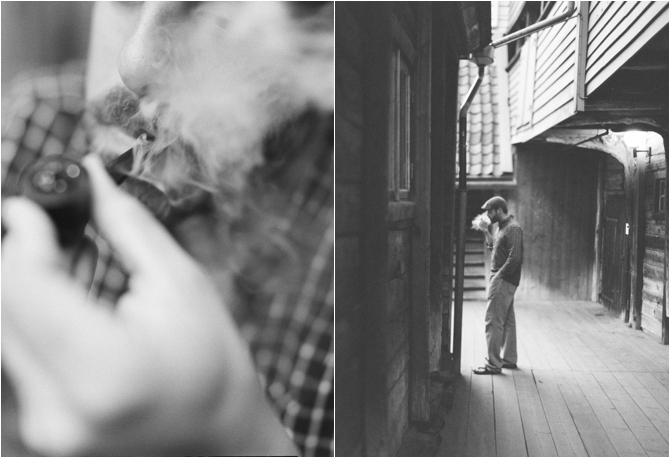 As many of you know, we recently traveled to Norway to renew our vows for our 10 year anniversary. We had some amazing times in the 2 weeks that we were there. This was one of those times. One night, along with our friends, Cara Dee and Jacob, we headed to Bryggen, a very famous spot in downtown Bergen, filled with history and beautifully old buildings. On that memorable evening, we let our men be the center of our attention, as they enjoyed their tobacco-filled pipes. The pipe Wes is smoking actually belonged to my Norwegian grandfather. As a child, I loved watching my grandfather smoke this pipe. It makes my heart happy to see Wes still bringing it to life, so many years later. These photos are the beautiful result of this cherished time together.